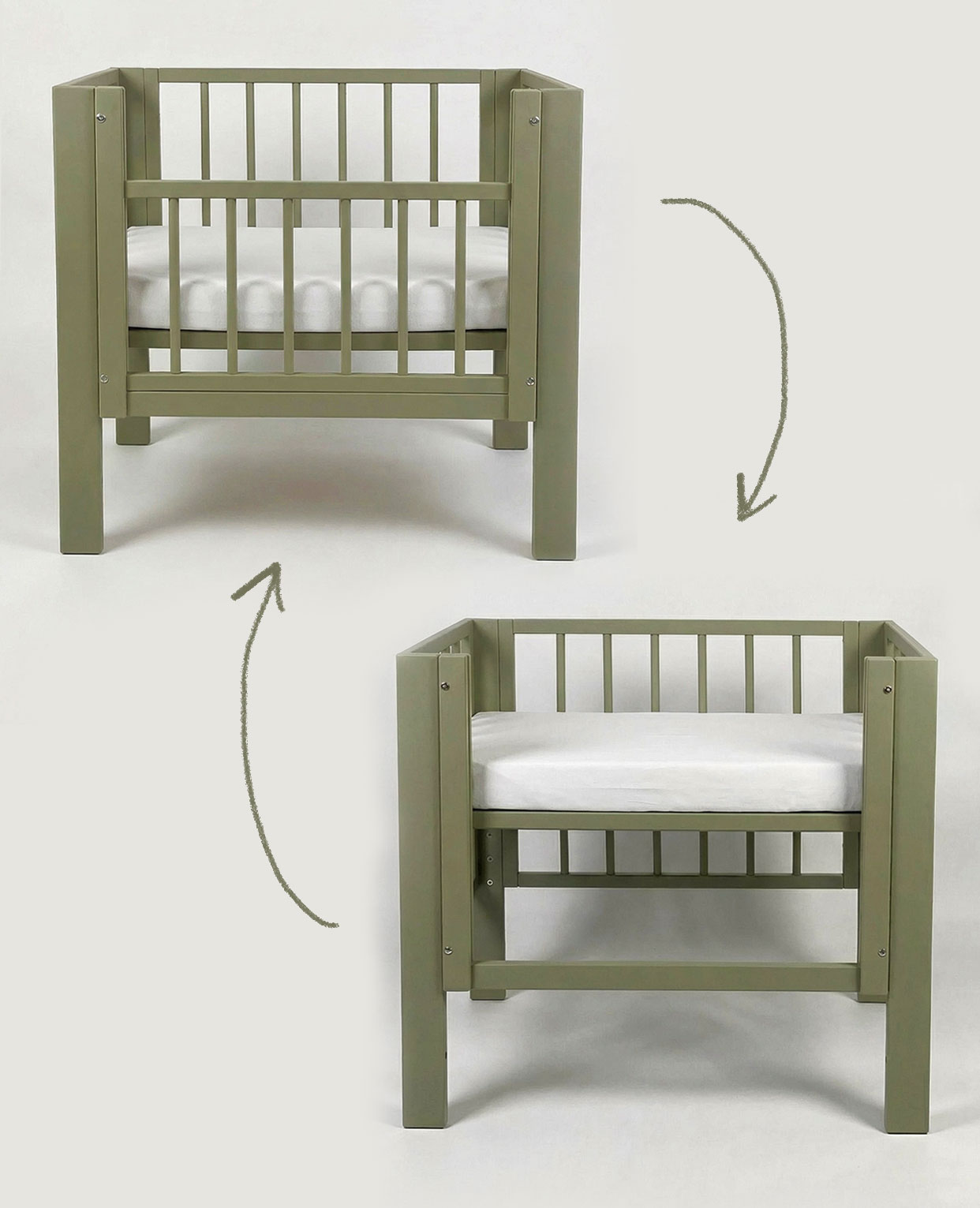 • Экономия пространства: Идеальный выбор для небольших спален. Она занимает минимум места, сохраняя полный функционал полноценной кроватки.